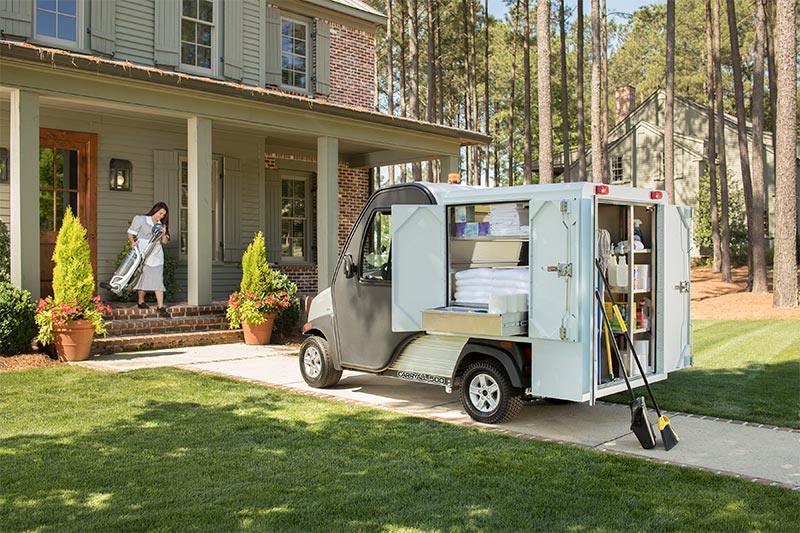 The 411 UTILITY is a compact all-electric, low-speed utility vehicle for urban logistics and cargo services. A robust and versatile vehicle, the Club Car 411 fills an important void in the commercial market and can handle various jobs at an affordable price. With a unique and versatile compact design, it is an agile utility vehicle capable of a broad range of uses and applications.
